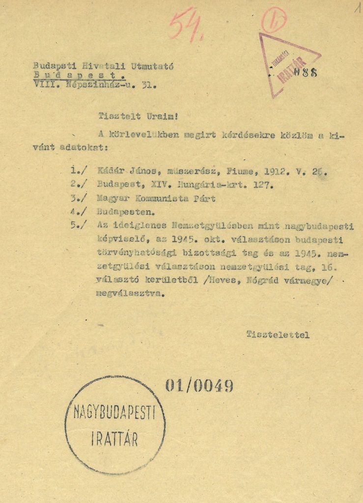 Életrajzok, igazolások, jellemzések a Magyar Kommunista Párt budapesti irataiban HU BFL XXXV.70.b.7 43. őe. Magyar Kommunista Párt Budapesti Bizottságának kádermunka ...